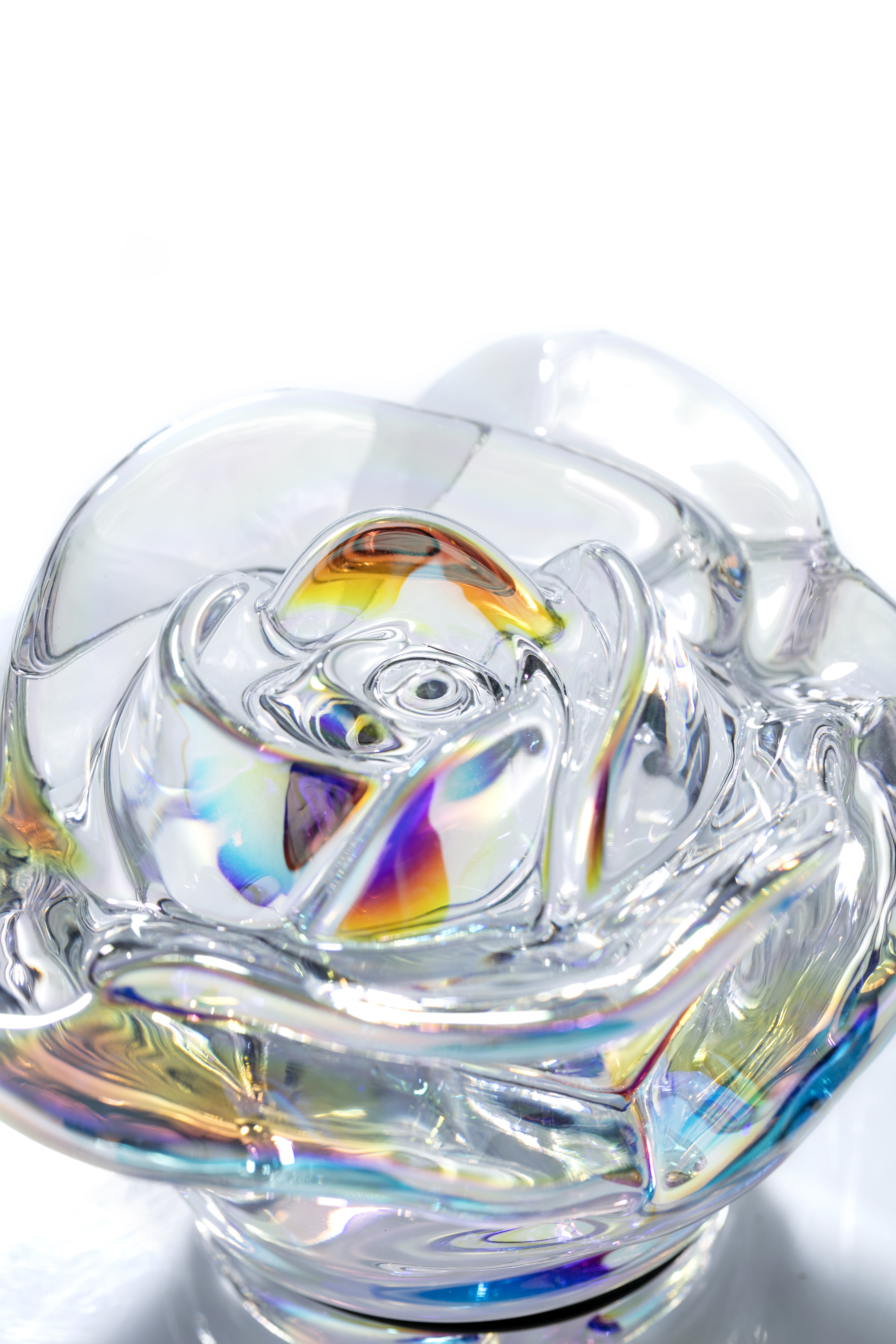 Cristallo iridescente o trasparente, pistillo blu, rosa, rosso, verde, ambra o grigio.