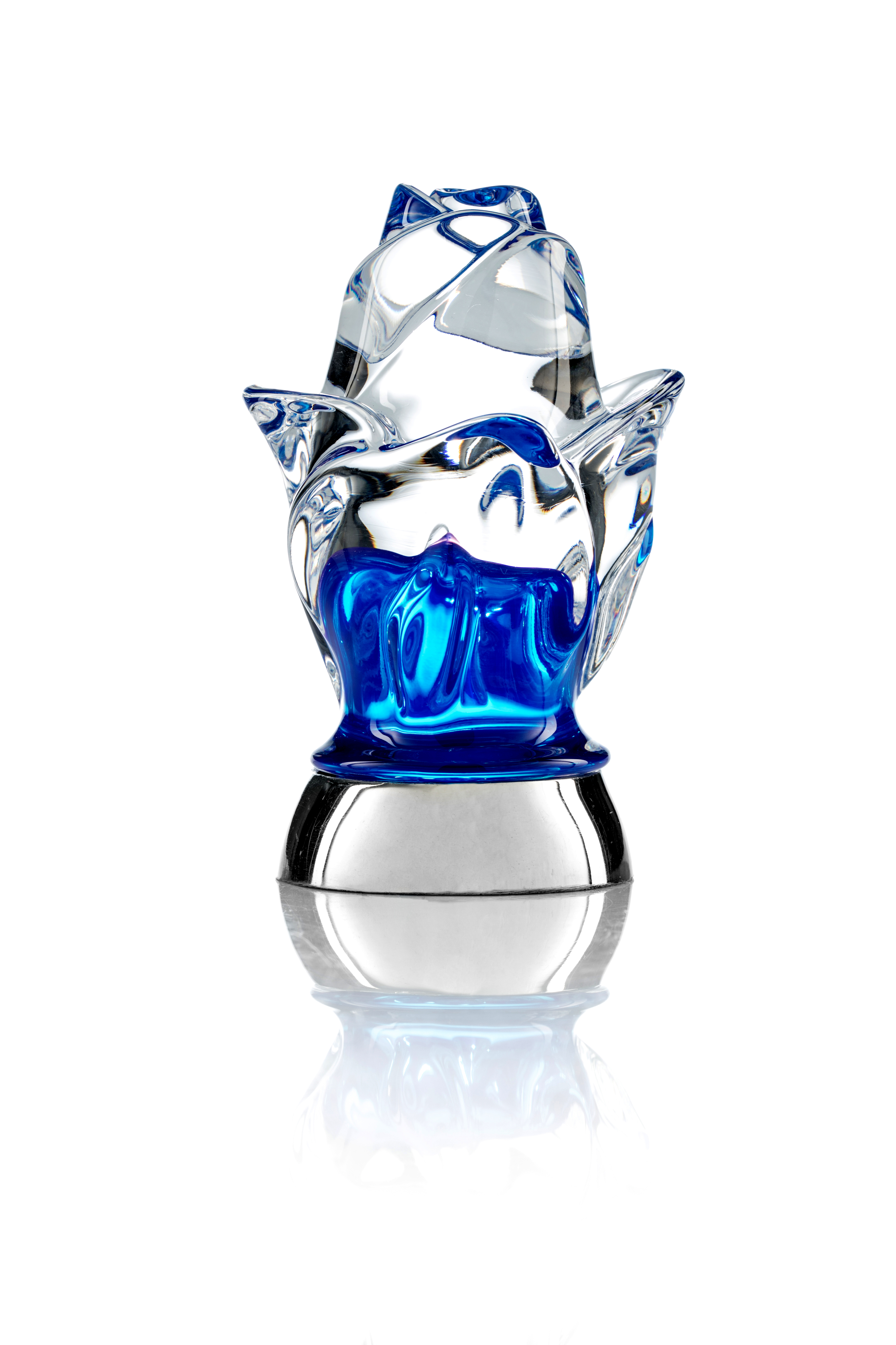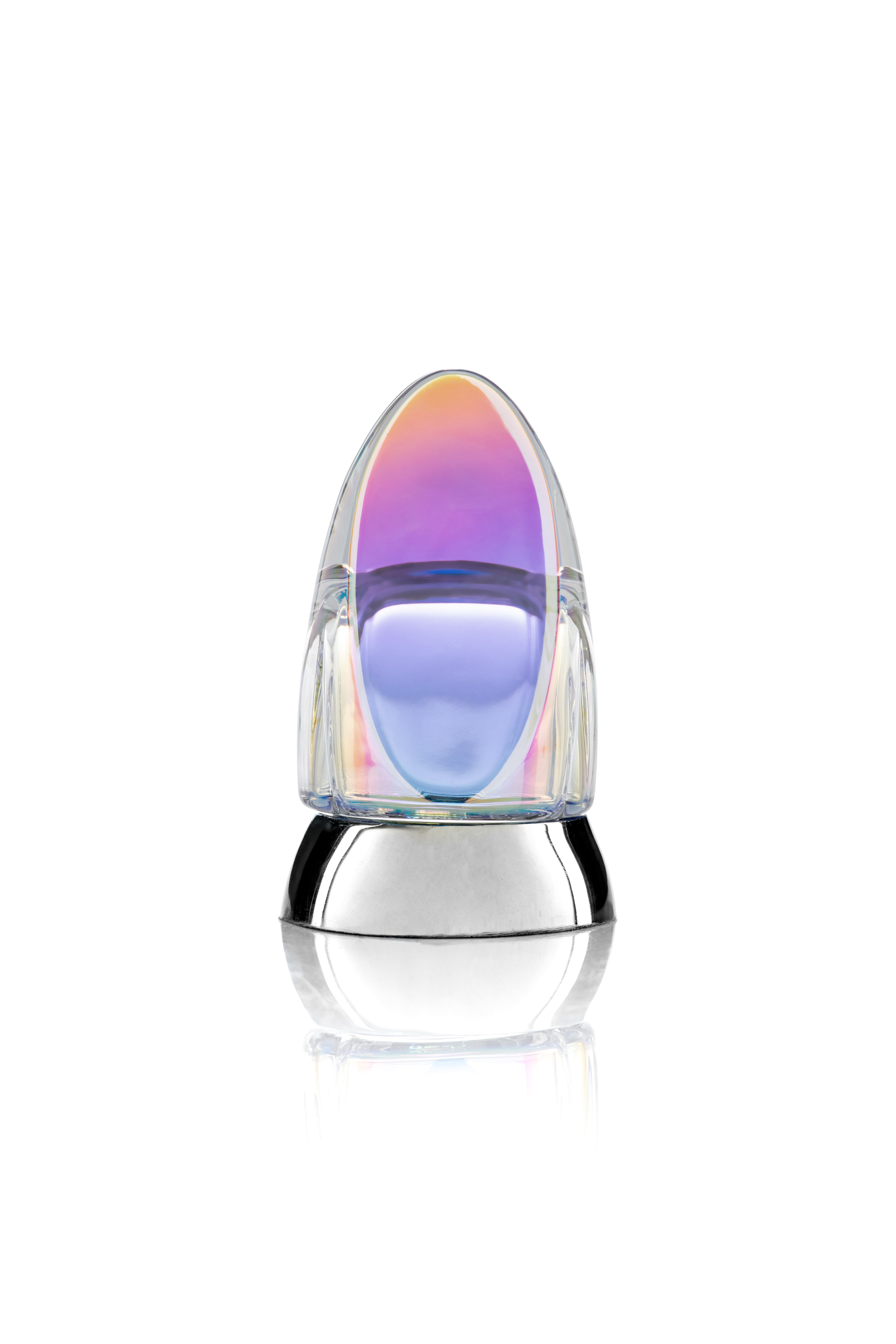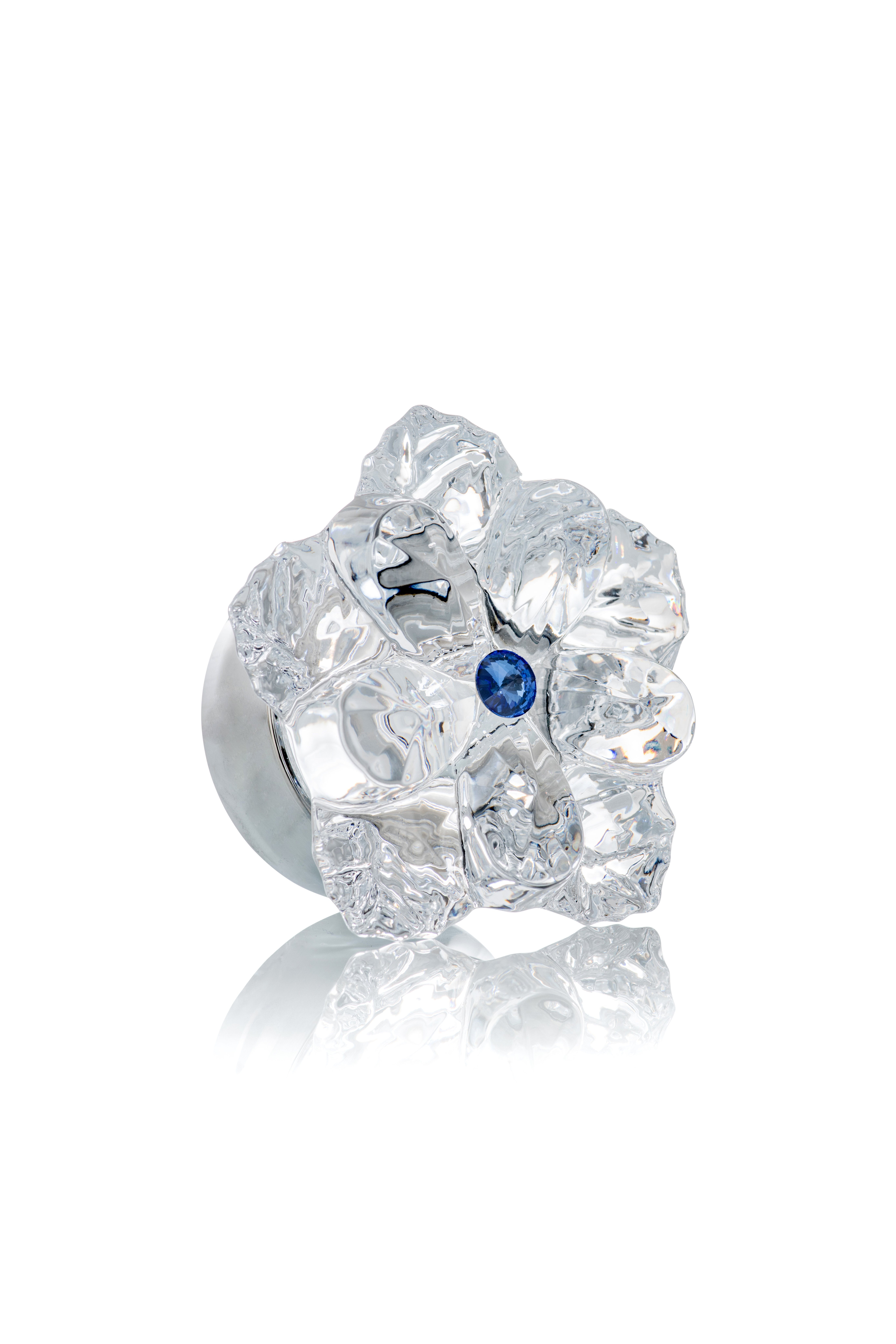 Cristallo iridescente o trasparente, pistillo blu, rosa, rosso, verde, ambra o grigio.